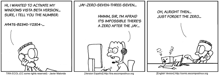 All Ecol cartoons are at tira.escomposlinux.org (Spanish), comic.escomposlinux.org (English) and http://tira.puntbarra.com/ (Catalan). The Catalan version is translated by the people who run the site; only a few episodes are currently available.