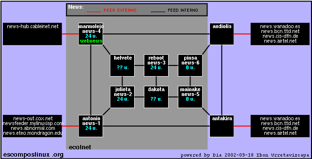 What was the motivation behind EcolNet? Basically, the terrible management by the Spanish ISPs of the newsgroups, including es.comp.os.Linux.*. Slow services, lost messages... We thought we could do better. Also, the first place that hosted escomposLinux.org was very resctrictive, data storage was expensive and FTP was limited. As soon as we thought we could take care of the services we needed, we moved escomposLinux.org to our home servers.